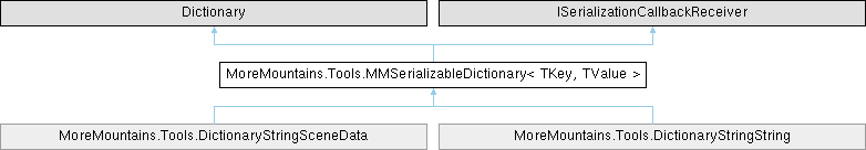 For each type of dictionary you want to serialize, create a serializable class that inherits from MMSerializableDictionary, and override the constructor and the SerializationInfo constructor, like so (here with a string/int Dictionary) :